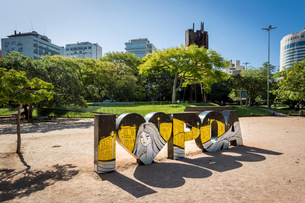Os gaúchos são conhecidos pelo bairrismo e é claro que na capital do Estado não seria diferente – com um detalhe: além de amar o Rio Grande do Sul, nós amamos Porto Alegre. E tu vais perceber, já que essa declaração está – literalmente – espalhada pela cidade. Os letreiros de I ❤ POA são uma iniciativa da construtora Melnick, que instala os totens em diferentes parques e praças que mantém, através de parceria público-privada. A medida de adotar espaços públicos, revitalizar e realizar a manutenção mensal é uma forma de retribuição da incorporadora, que se tornou uma das maiores do país, construindo imóveis de alto padrão na capital gaúcha. Além de valorizarem o grande orgulho que os porto-alegrenses têm da sua terra, as estruturas também são peças de arte. Cada uma delas foi customizada por um artista local diferente.