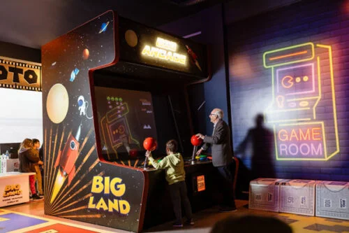 - Brinquedos Gigantes: Réplicas interativas e funcionais de clássicos das décadas de 80 e 90 em tamanhos monumentais.